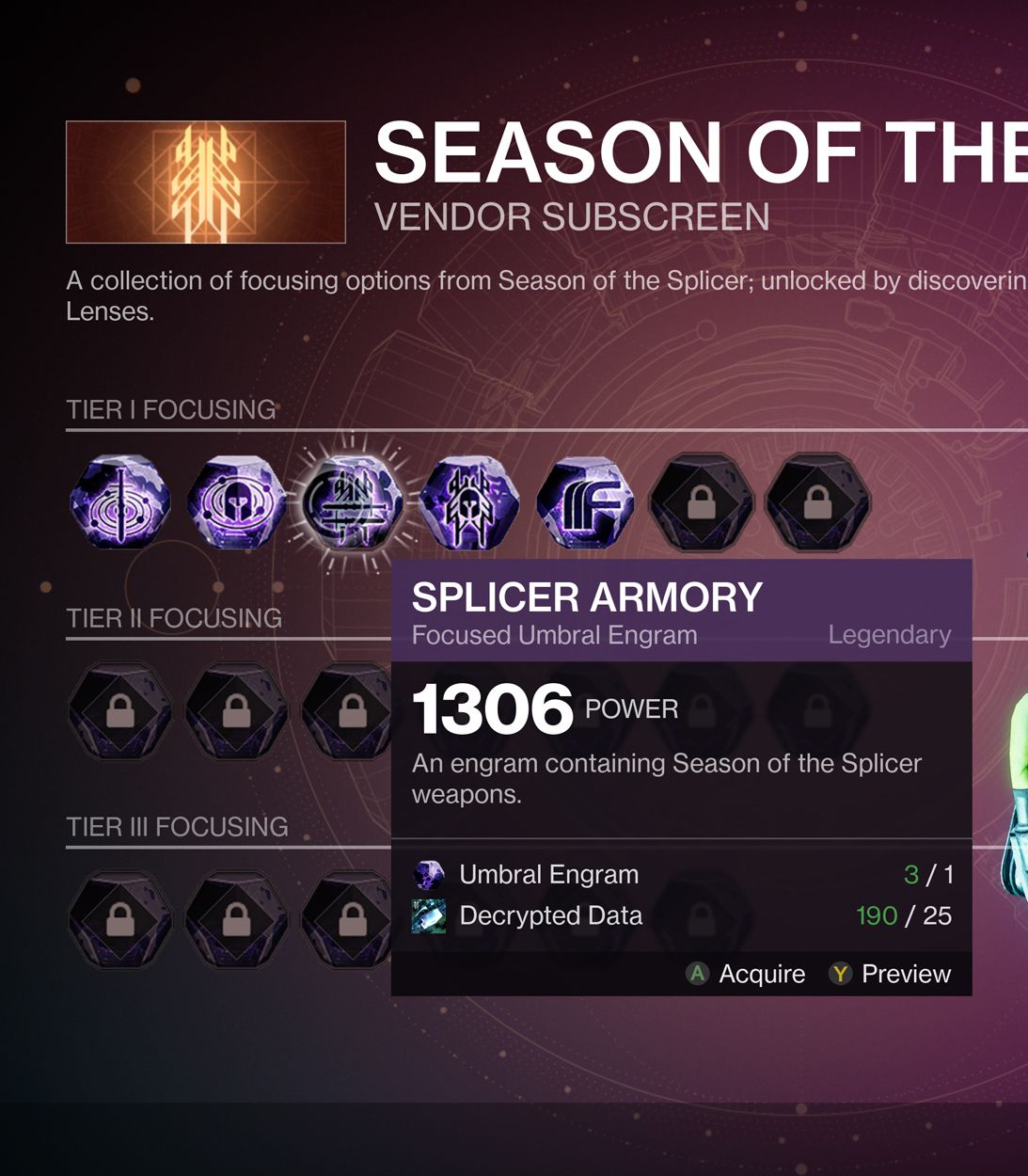 May 23, 2021 · open umbral engrams. Select the umbral engrams you wish to open (this includes normal umbral engrams and those that have been modified) to receive the gear. In the case of season of arrivals,. Jun 09, 2020 · to focus an engram, players are required to combine an umbral engram with a certain number of altered elements. You can also change the umbral engrams,. What do umbral engrams do in destiny 2? The game describes engrams as encrypted states of matter that represent an item's purest form. Simply put, players need to collect twisted energy to increase their umbral research level, then collected altered elements and umbral engrams to farm for the specific gear they want. These engrams are native to destiny only and contain weapons and armor pieces that can only be viewed and equipped after the engram is opened. Jun 17, 2020 · in order to open engrams in destiny 2, you must take them to the correct vendor. How do you open engrams in destiny 2? How do you focus an engram in minecraft? May 23, 2021 · to save time and to make this simple, just open the then store tab which is also on the same menu as the map, destinations, and season tabs.